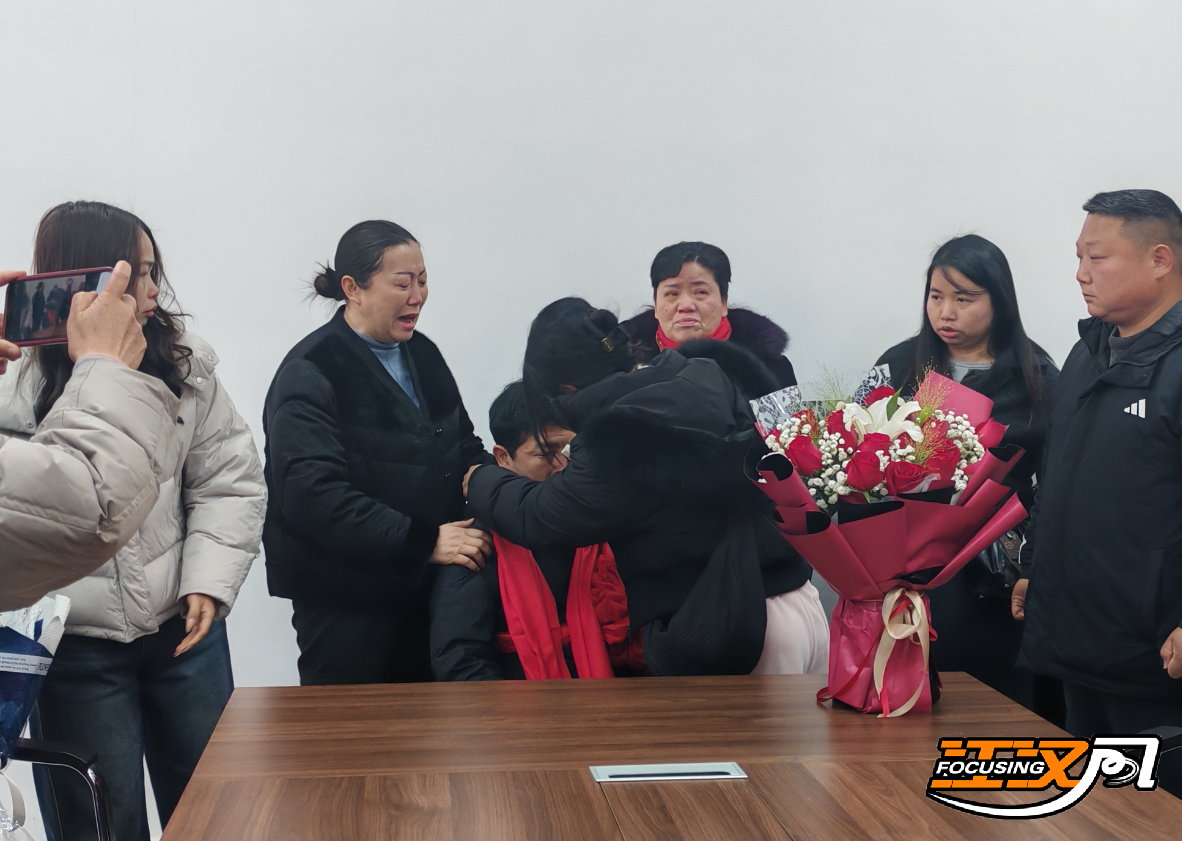 看到弟弟小李下车,姐姐迫不及待地迎了上来,紧紧抱住弟弟,也直到此刻,姐姐才真真切切地感受到弟弟回家了,亲人们也纷纷上前拥抱。