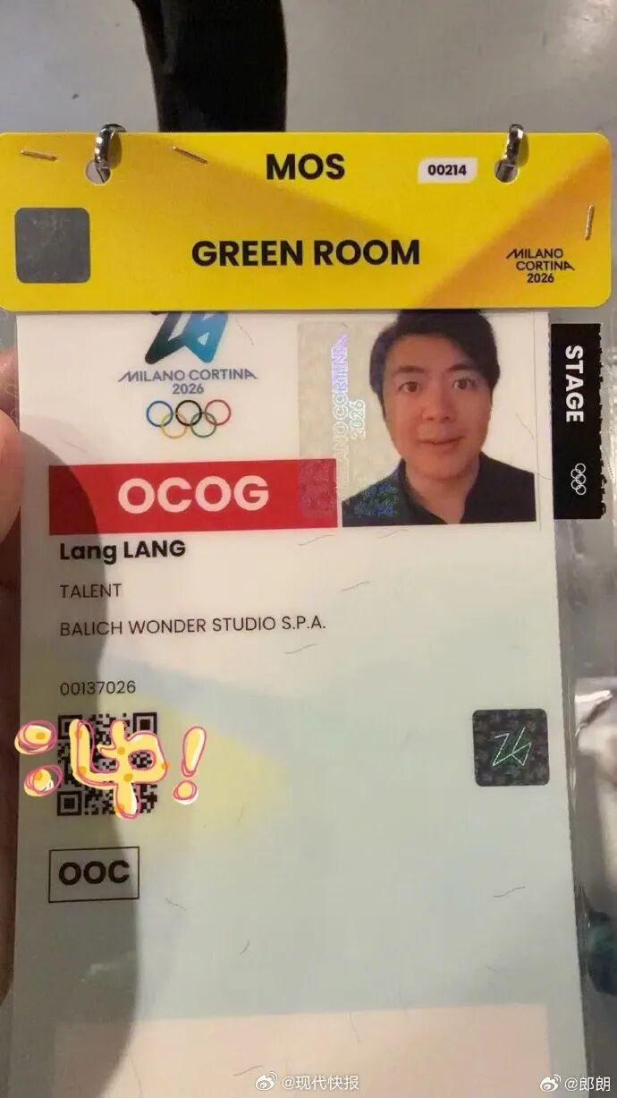 2月6日,郎朗晒出米兰冬奥会工作证。