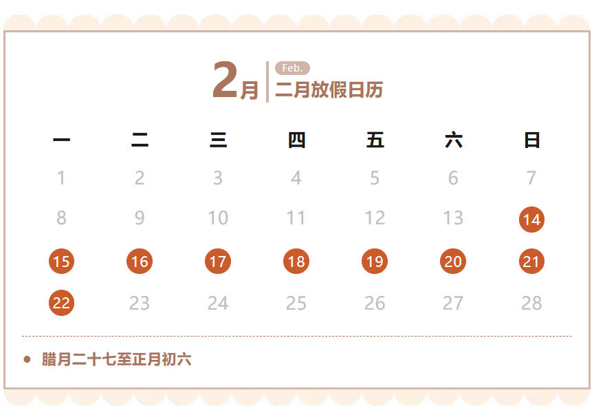 2月14日-2月22日 11:00-14:30 17:00-19:30