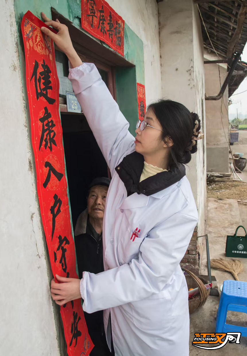 江汉风报道:为了让群众过个健康祥和的新年,公安县毛家港镇新曙光村的大学生村医郝甜,春节期间深入村民家中开展公共卫生服务与健康科普宣讲。在为老人讲解冬季防病、慢病管理等知识后,她又暖心地为村民贴上春联,将医疗关怀与节日祝福一同送到家门口,用实际行动诠释青年医务工作者扎根基层,服务乡村的责任与担当。
