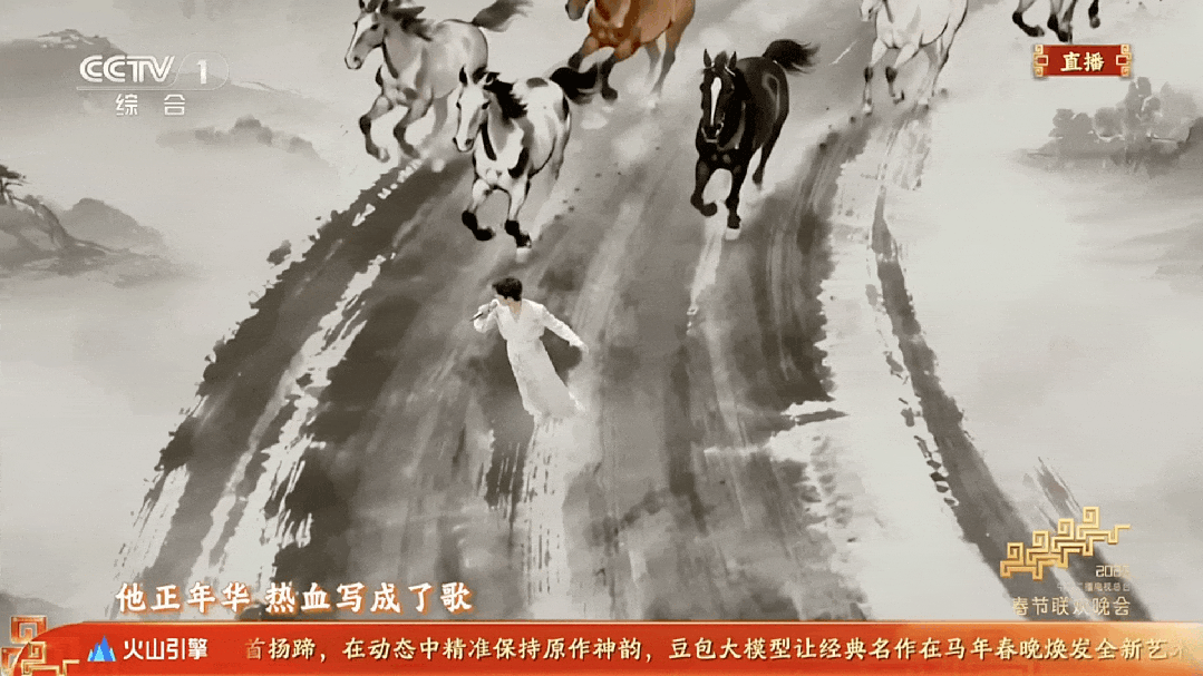豆包大模型打造的AI水墨特效把徐悲鸿的《六骏图》搬上舞台