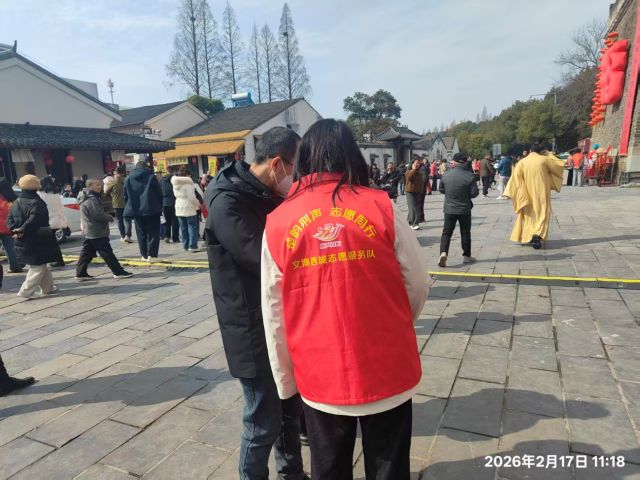 活动现场人头攒动,三国早市香气四溢,机器人集群舞蹈引得游客争相打卡,处处洋溢着新春的热闹氛围。为保障活动有序开展,西城街道提前周密部署,依托“荆声有你”志愿服务体系,精准划分服务区域,组建讲解引导、安全保障、秩序维护三支志愿小分队,志愿者们各司其职,在人群中疏导客流、解答咨询,及时清理现场垃圾,为游客提供贴心的拍照服务、停车指引,成为古城中一抹亮眼的“志愿红”。