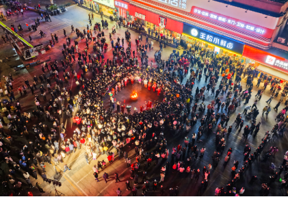 江汉风报道:3月3日,荆州江陵中央金街商圈人头攒动、热闹非凡,一场以“元宵喜乐会·梦回古江陵”为主题的元宵节活动火热上演。民俗文化巡游、天女散花、传统手工艺展示、篝火晚会等活动内容丰富多彩,浓浓年味直接拉满。