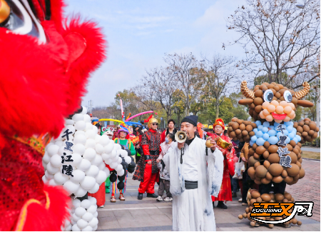 巡游队伍中“李白”、汉服“仙子”“小丑”“财神”等NPC贯穿全场,广大市民游客在逛、玩、赏、购中与他们近距离互动。