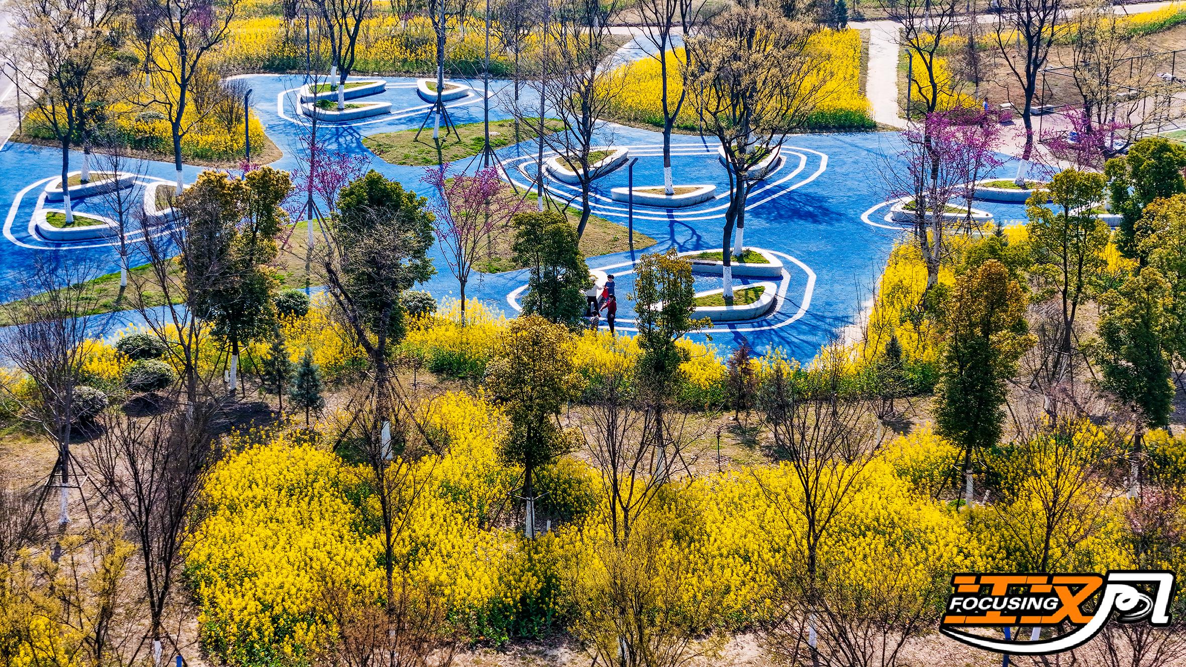 在市民之家的北边,近12万平方米的油菜花海正蓄势待发。当春风拂过,金色的波浪与远处现代化的建筑交织在一起,形成了一种奇妙的“城田共生”景观。