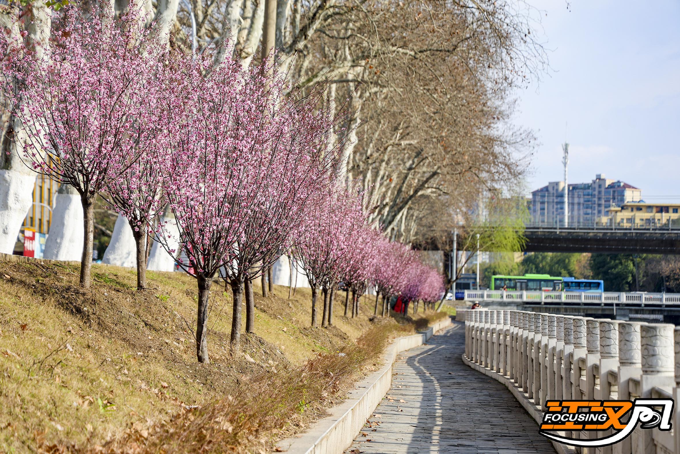 在荆沙河畔,沿着北京西路漫步,你会偶遇200多株美人梅。说它是美人,一点不为过——它是红叶李与梅花的杂交品种,兼具了梅花的清香与红叶李的艳丽。