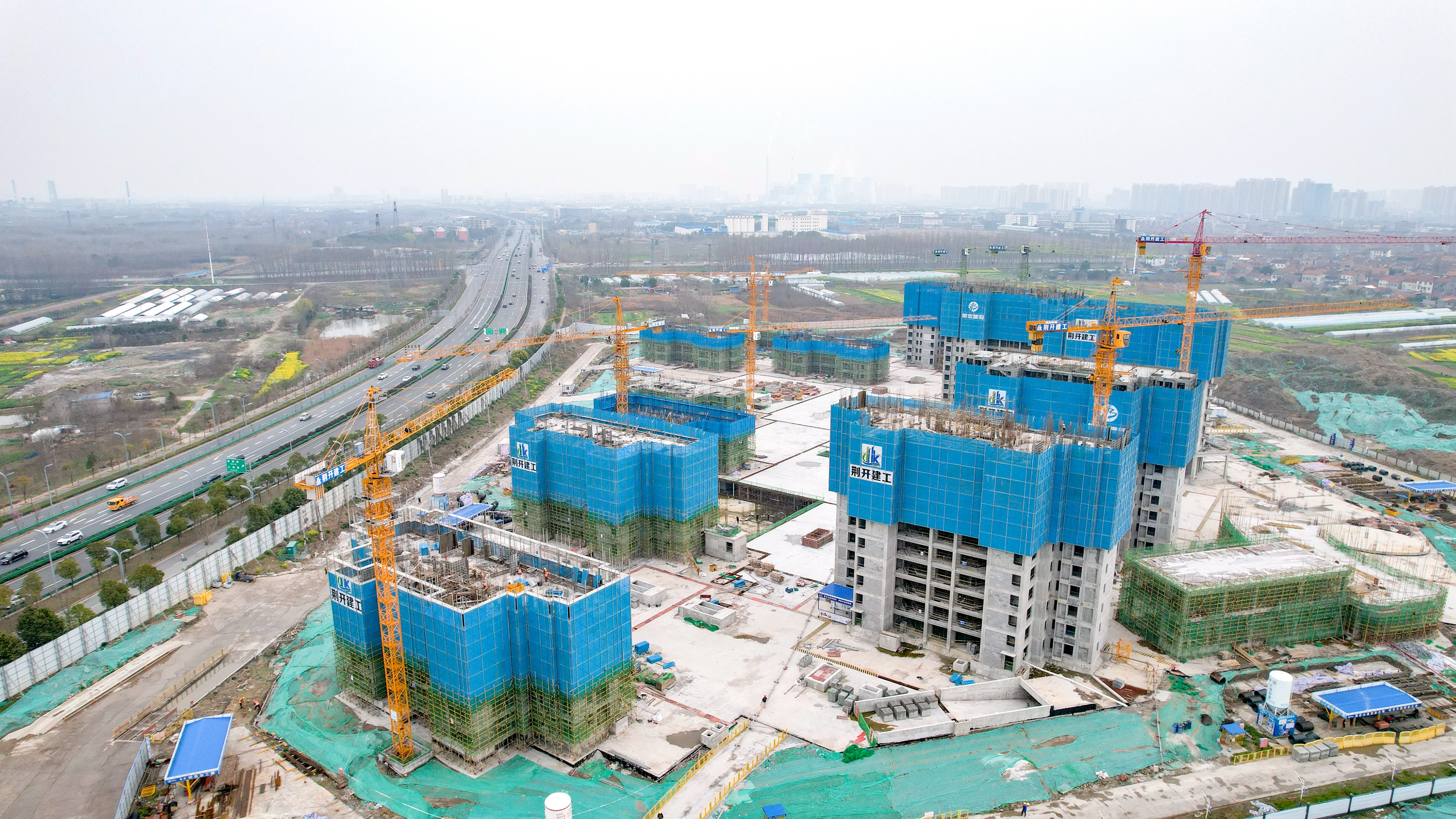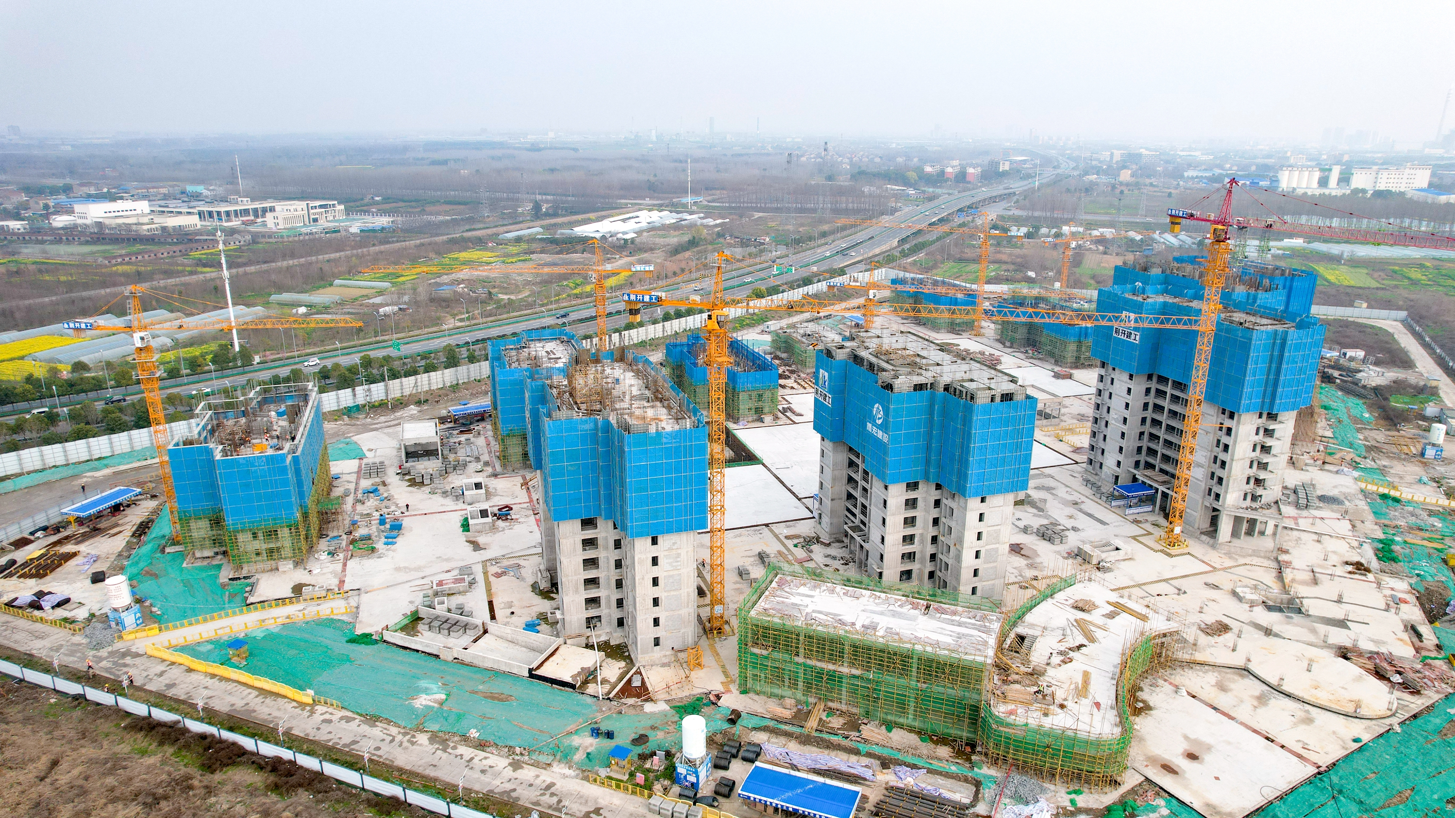 江汉风报道:近日,荆州经开区老机场片区保障房小区建设项目(B地块)施工现场塔吊林立、施工正酣。工人们正加紧进行钢筋绑扎、模板支设与混凝土浇筑作业,一派热火朝天的建设景象。