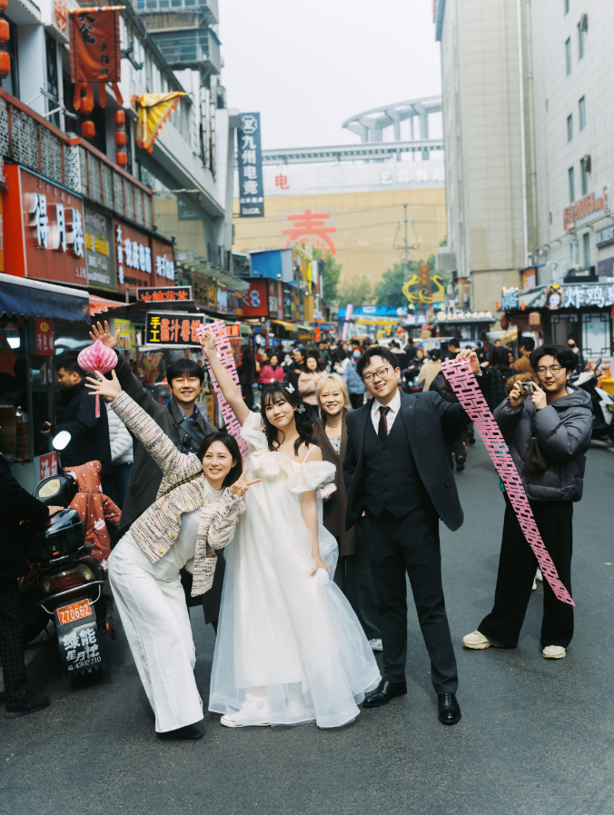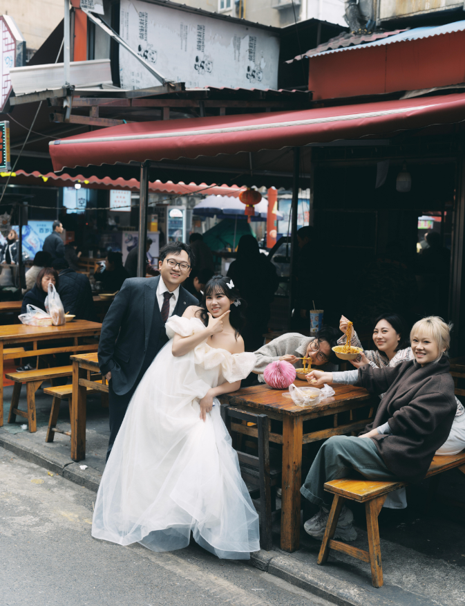 拍摄过程中,街头巷尾的温暖瞬间,更让这对新人倍感动容。