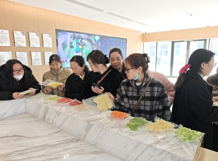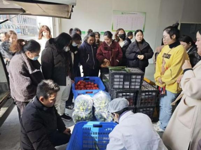 活动设置食堂参观、净菜配送企业走访、家校共餐三大环节,让家长从源头到餐桌体验食品安全管控。家长们先后参观学校食堂食材储存、加工、烹饪、消毒等区域,工作人员讲解食材采购验收、加工规范等制度,演示数字食堂刷脸系统操作;随后前往净菜配送合作企业荆州大美季食品科技有限公司,观摩食品检测、加工制作、冷链运输等环节,深入了解食材源头管控体系。