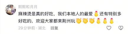 “今天在湖北荆州吃特色麻辣烫”