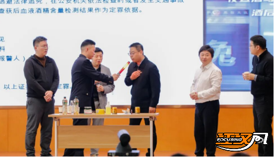 活动中,市公安局交通管理局四级警长杜天以“交通安全脱口秀”形式开场,将“一盔一带”、酒后禁驾等内容融入其中,在轻松氛围下传递严肃主题。通过现场互动、情景演绎、事故视频、情节还原等方式,将法律条文转化为生动的安全警示。他系统解读酒驾醉驾的认定标准、处罚规定及案件办理流程,以身边案警示身边人,深刻揭示法律处罚与纪律处分的双重追责机制,全面剖析法律、经济、职场、时间、家庭、社会六大沉重成本。