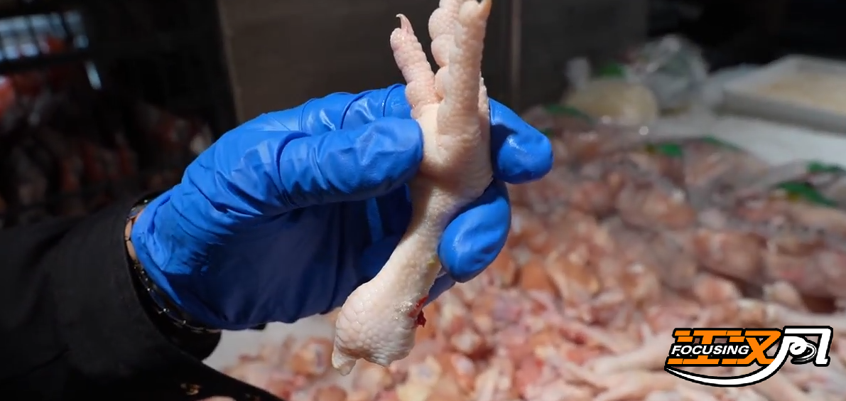 荆州区东城市场监管所副所长倪冬冬:“主要看颜色,是不是过白,还有发泡的感觉。没有泡过的肉是比较紧致、带有血丝的,请大家在选购冻鸡爪的时候,谨慎购买。”