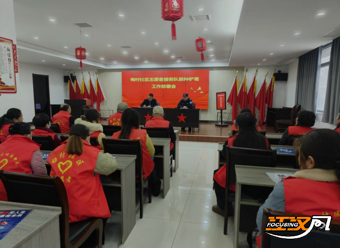 江汉风报道:为彻底铲除毒品隐患,3月18日,荆州区城南街道梅村社区组织志愿者服务队召开禁种铲毒工作部署会,社区民警及志愿者参会。