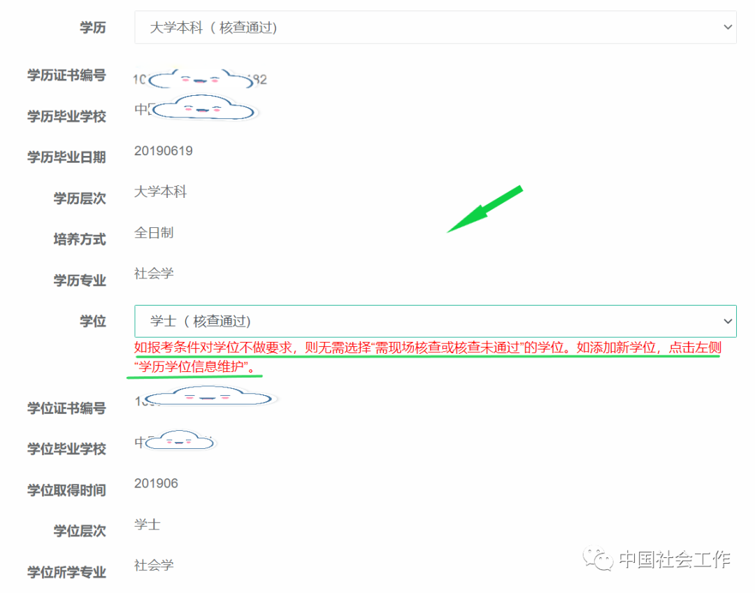 (9)允许报名专业。社会工作专业毕业的选“社会工作”,其他专业毕业的选“其他”。