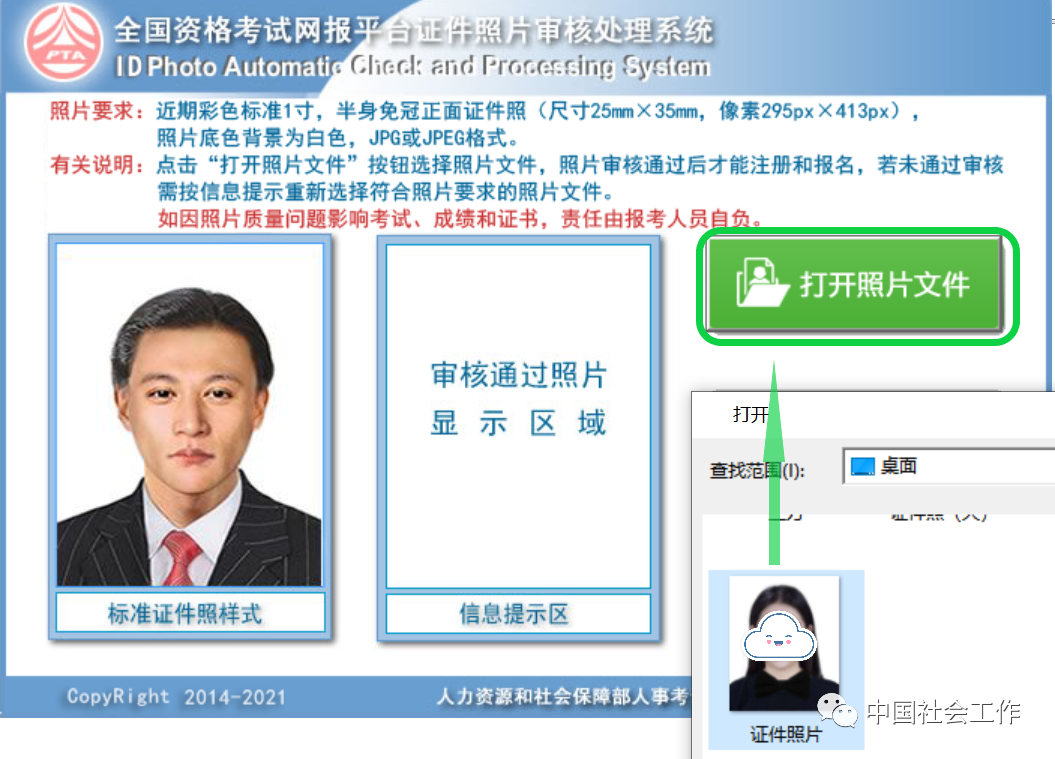 2.点击“打开照片文件”,选择自己的报考照片打开进行处理。