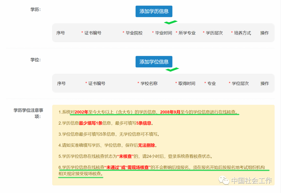 7.如因信息填写错误核查未通过,请重新添加正确的学历或学位信息,等待核查通过后,使用正确的学历或学位信息报名。