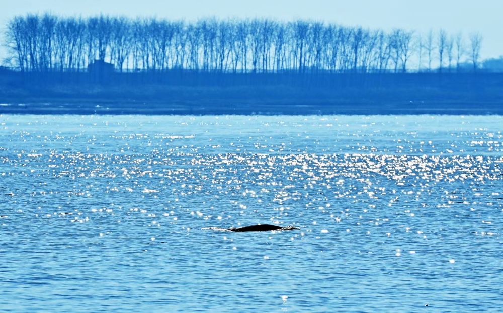 在长江武汉新洲段拍摄到的江豚戏水情景。新华社发(金振强 摄)