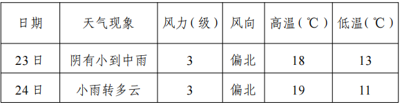 截至3月23日08时过去24小时内,荆州市大部地区阴天转小雨,松滋、荆州区、沙市区、公安、江陵、石首 30 个乡镇中雨,累积雨量最大 15.4 毫米(松滋万家乡)。国 家站最高气温 16.6~19.4℃,最低气温 12.0~13.8℃。