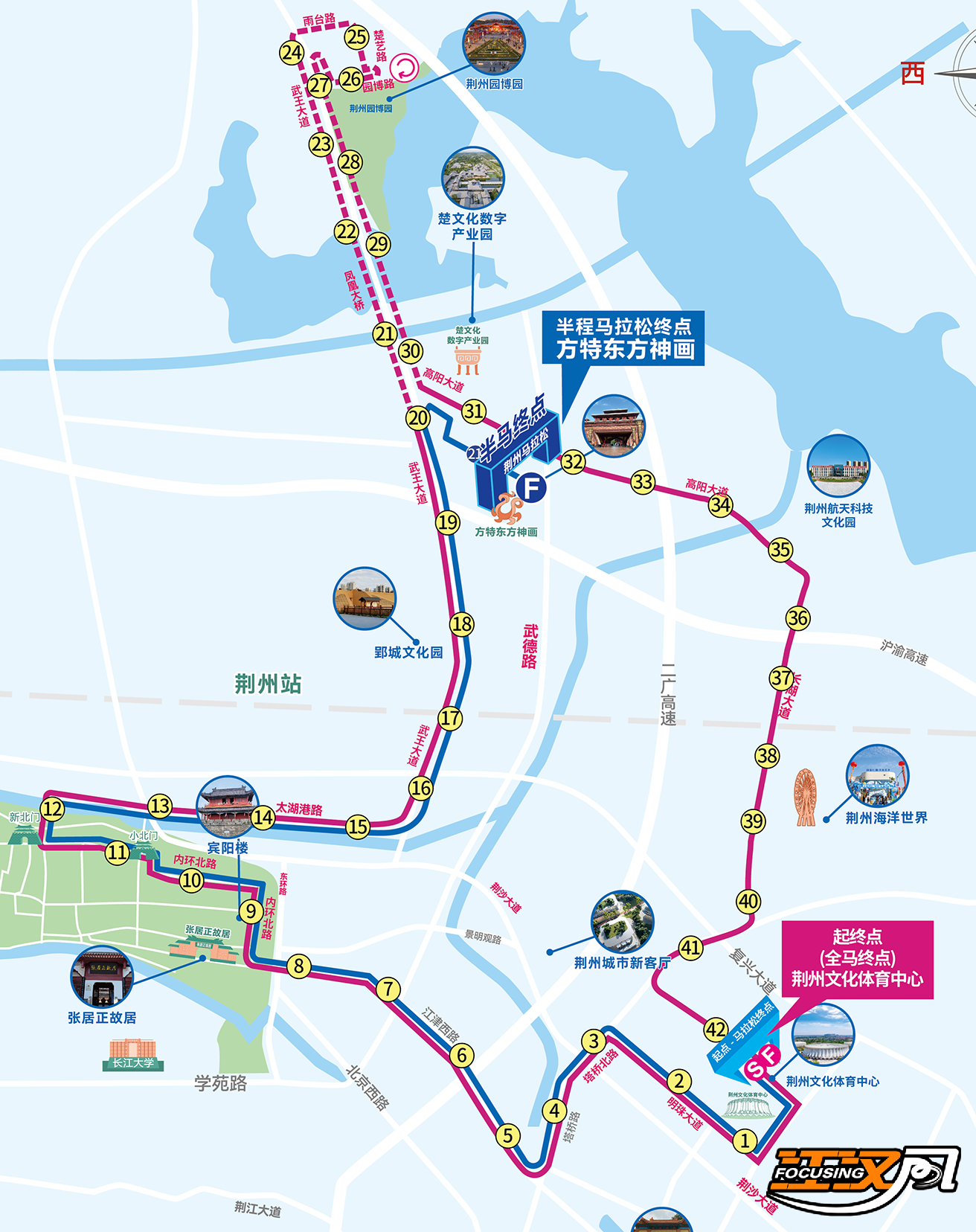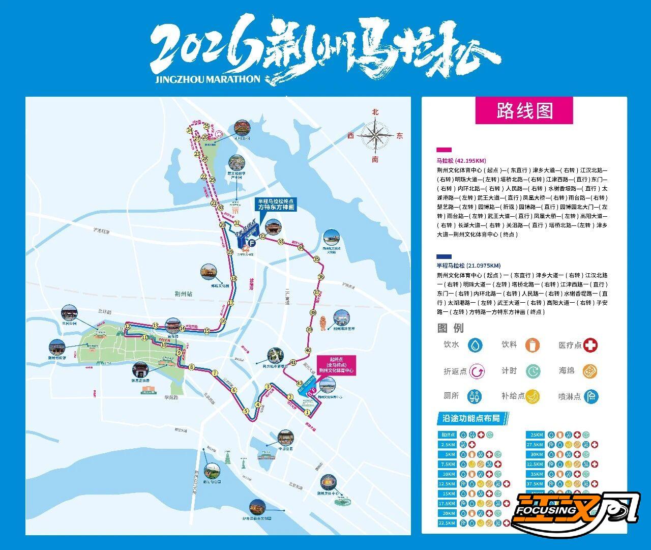 本次马拉松的起点设在荆州文化体育中心,全马和半马的路线在前期存在重合,途经津乡大道、江汉北路、明珠大道、塔桥北路,穿越东门后进入内环北路、人民路等古城区域。其中,全马路线还将延伸至凤凰大桥、园博园及长湖大道等地,串联起荆州多个标志性区域。为确保赛事安全,临时交通管制从本周四起陆续启动。
