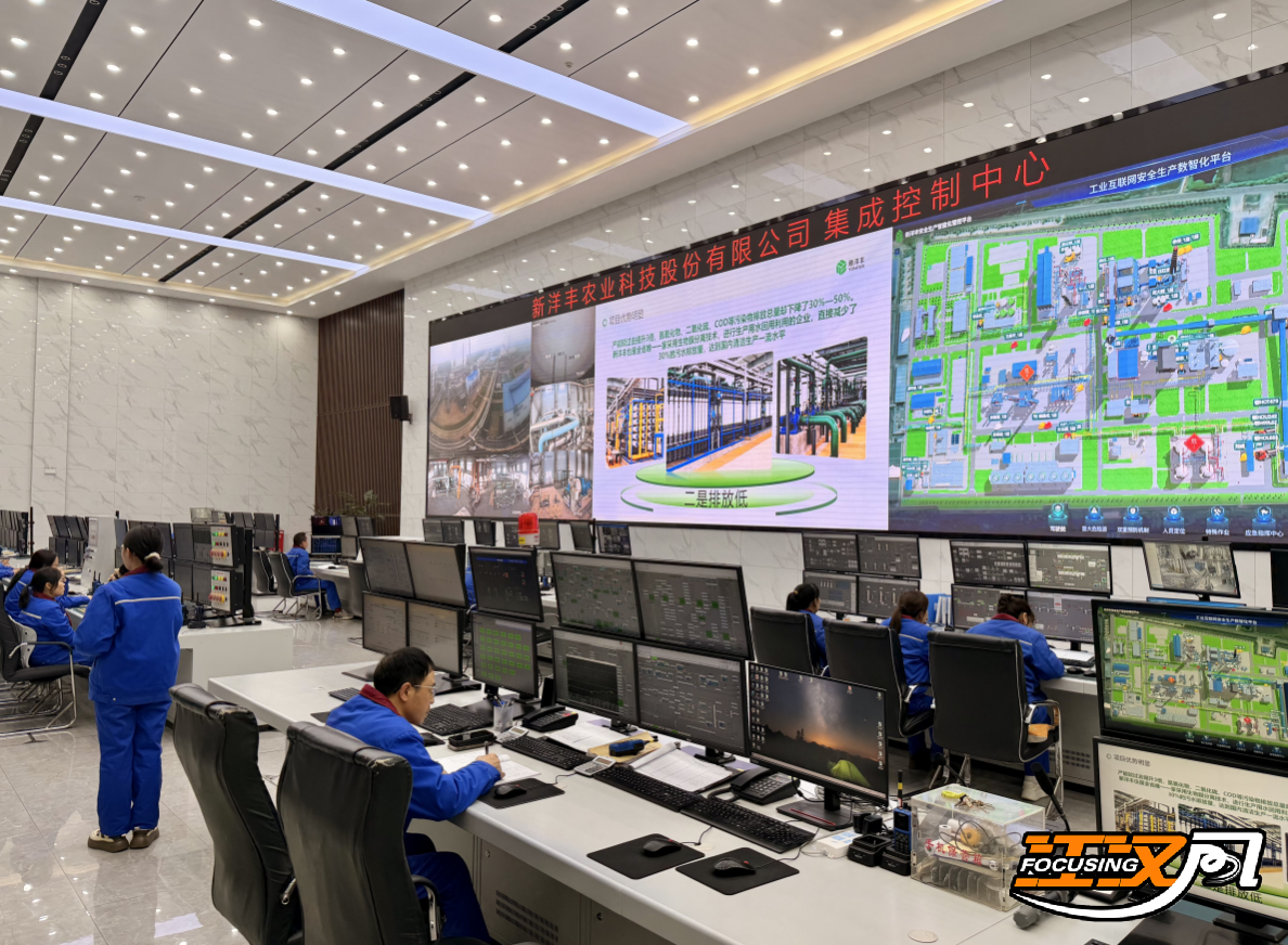 考察组一行先后参观了企业接待中心、硫酸钾八线生产线、合成氨自动化展示中心及集成控制中心。在沙盘前,企业负责人详细介绍了新洋丰覆盖10个省份、拥有14个生产基地的全国布局;在自动化生产车间,考察组实地查看了智能化生产流程;在集成控制中心,考察组通过工业互联网安全生产数智化平台,全面查看了厂区生产运行状态。
