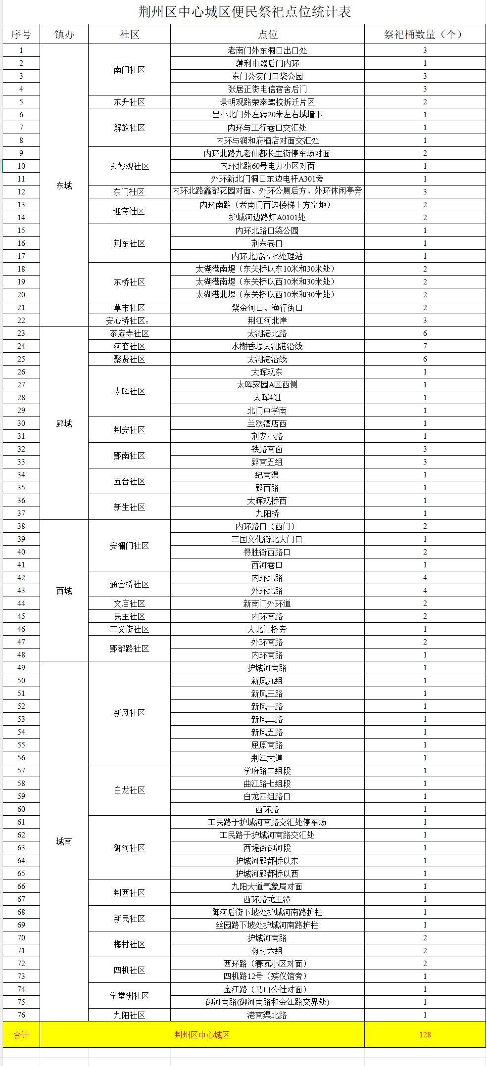 江汉风报道:清明临近,为统筹传统祭扫习俗与城市文明管理,截至4月3日,荆州区4个街道23个社区设置128处文明祭祀焚烧点位,引导市民安全、文明、有序祭扫。