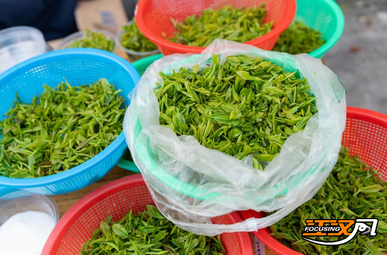 活动现场,一场融合古风舞蹈、民歌对唱与传统茶艺的文艺展演精彩上演,为活动拉开序幕。随后,身着汉服的引导员带领游客步入茶园,茶垄间民歌爱好者与游客即兴对唱山歌,悠扬的歌声在茶园回荡,为采茶体验增添了几分趣味。在茶农的悉心指导下,游客们认真学习“一芽一叶”的采摘技巧,指尖轻捻间,鲜嫩茶芽落入袋中,不少游客举起手机定格这一春日美好瞬间。