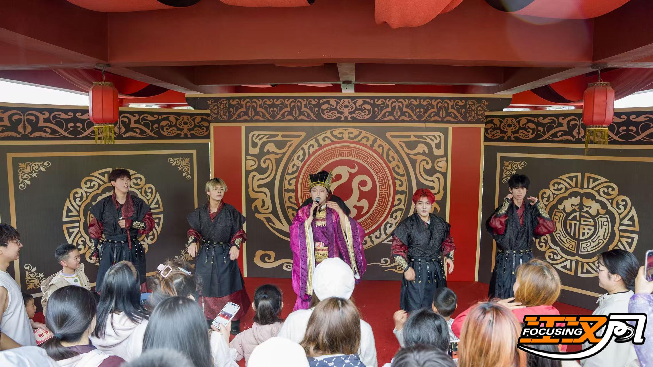 步入园区,百款坊间秀场里,实景演艺生动还原楚地市井百态,“楚都花宴”情景演出轮番登场,身着华服的NPC化身花神雅士,与游客一路互动打卡,百花大巡游的花车队伍走过时,更是掀起阵阵欢呼。焕新升级的《楚宫宴乐》互动小剧场人气爆棚,打破室内观演界限的体验动线,让游客穿梭于廊亭与剧场之间,在与演员的零距离互动中,触摸荆楚古乐的千年底蕴。