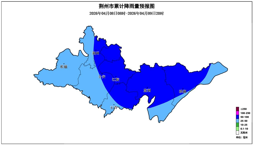 截至4月7日08时过去24小时内,荆州市大部地区阴天有小雨。国家站最高气温19.6~21.0℃,最低气温15.1~17.9℃。