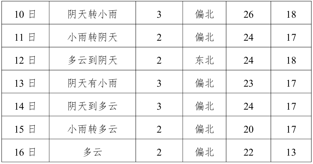 未来十天天气预报