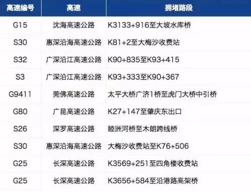 珠三角地区易堵高速是:沈海高速公路K3133+916至大坡水库桥;惠深沿海高速公路K81+2至大梅沙收费站等路段。