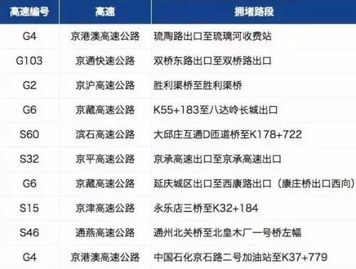 例如,京津冀地区易堵高速为:京港澳高速公路琉陶路出口至琉璃河收费站路段等十个路段。