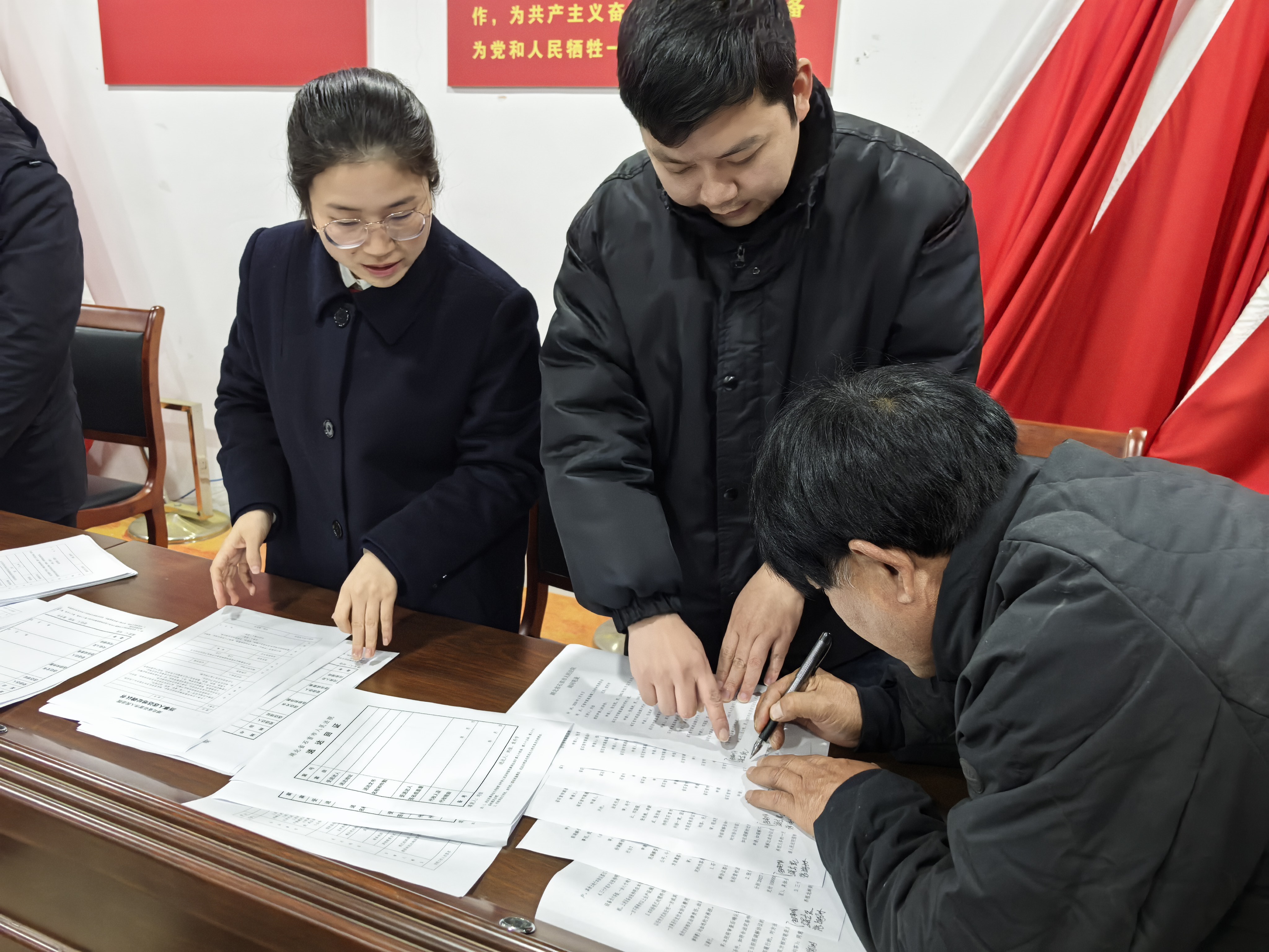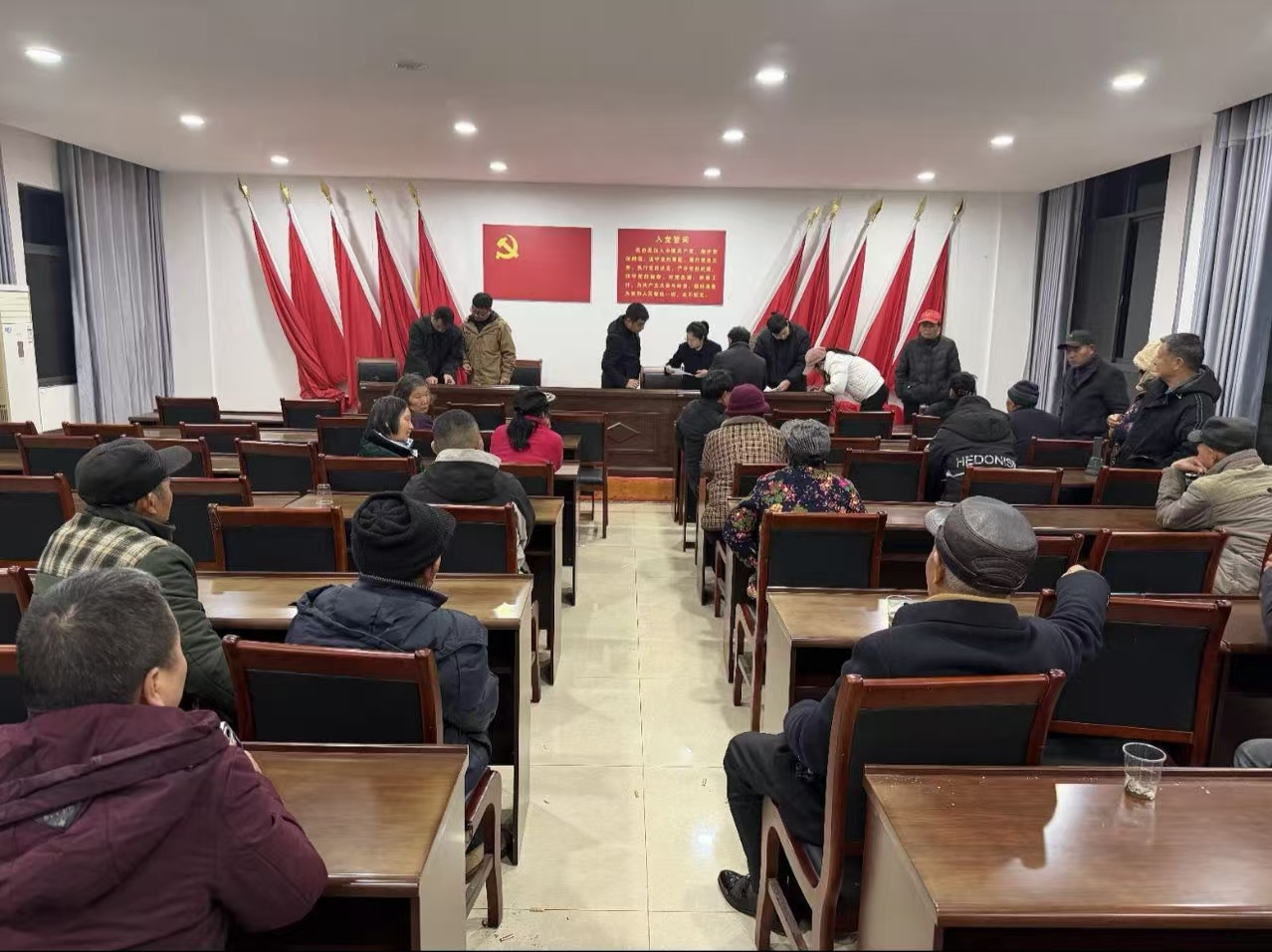 法庭转变思路,依托镇政法办协调,联合村委会和司法所组成调解团队开展先行调解。针对部分村民在外务工的情况,指导村民小组依法推选诉讼代表人,通过电话、微信逐一沟通,确保每户意愿得到尊重和程序保障。调解过程中,三方各司其职、协作推进。村委会干部发挥“接地气”的优势,负责情绪疏导与人员联络;承办法官则从法律专业角度剖析利弊、明晰规则,引导调解方向不偏离法治轨道。