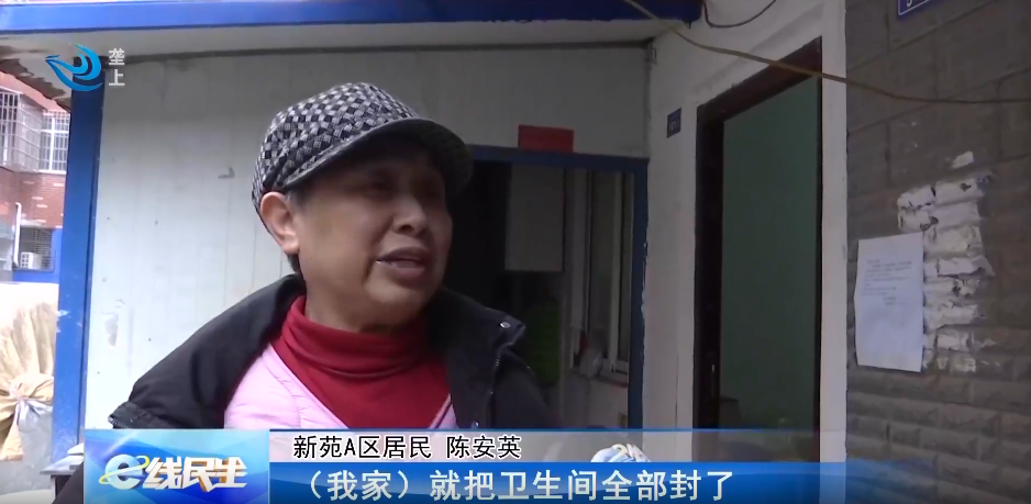 新苑A区居民 陈安英:我们那里也漏,因为我们那里以前是一个卫生间,现在封了,他们就说下面一直漏可能是二楼漏的水,我家就把那个卫生间封了,也没有用。
