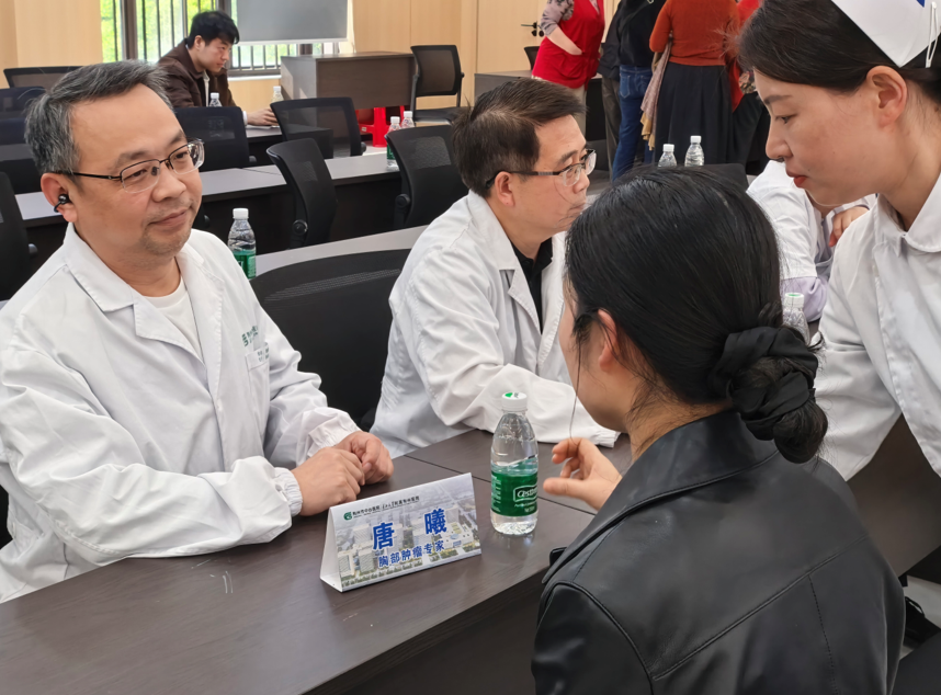记者在现场看到,唐曦、金志良、邱萍、龙健、邹靖等诸位肿瘤专家在临时摆起的“就诊台”前,接受居民的咨询,主要内容涉及胸部、腹部、头颈、妇科肿瘤方面。肿瘤中心周志芳护士长等专业护理团队,则贴心为居民查验血糖、测量血压并发放宣传册。