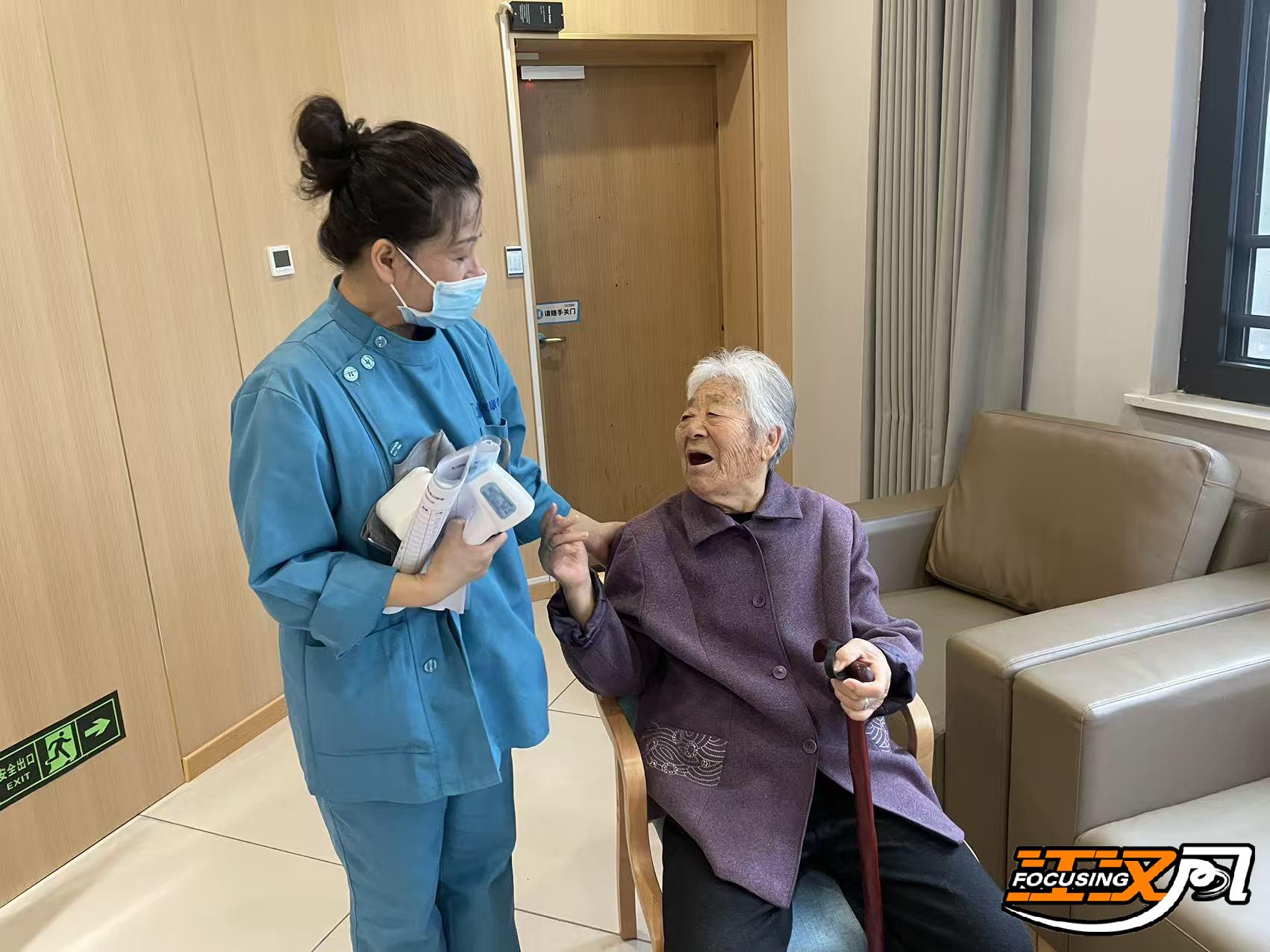 在这里,入住老人被24小时“无间断照护”。同时联动社区卫生服务站,形成医养支撑,小病不出中心、大病快速转诊。