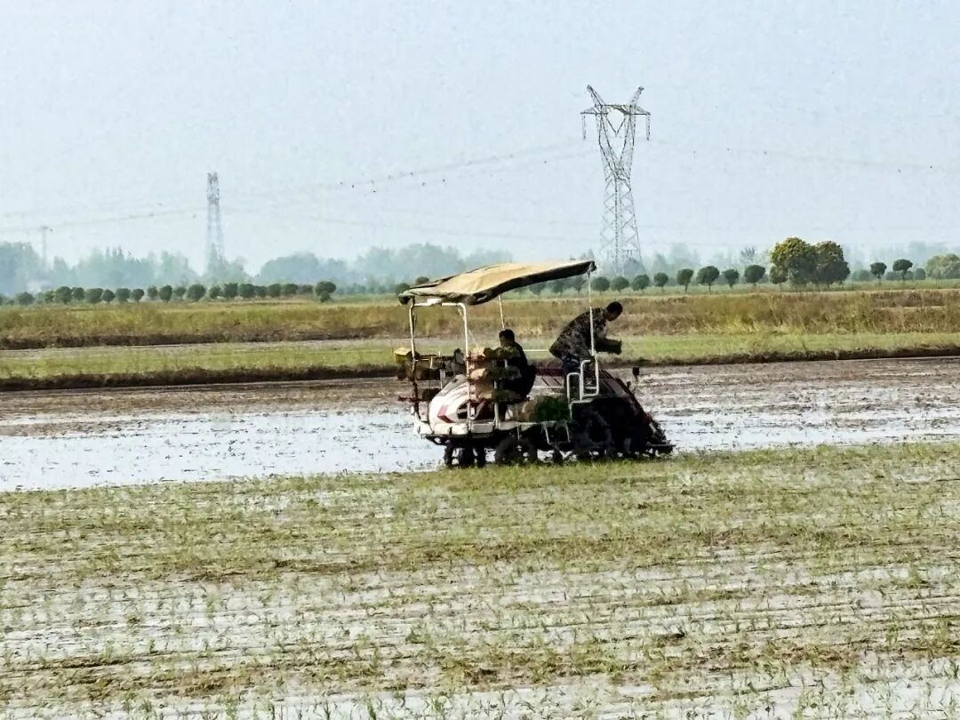 在松滋市楚丰农业科技有限公司的种植基地,2500亩早稻和再生稻插秧工作正紧锣密鼓推进。刚耕整好的水田里,三台插秧机有序穿行,秧苗整齐挺立,为田野披上嫩绿新装。