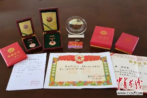 2017年1月22日,整理烈士遗物时,飞行员张浩的部分奖章证书被整齐地摆放在桌上。 赖桥泉 摄