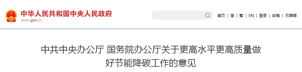据国务院网站 4月22日,中共中央办公厅、国务院办公厅发布《关于更高水平更高质量做好节能降碳工作的意见》(下称《意见》)。