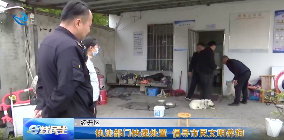 联合街道综合执法中心工作人员 夏亮:这次我们还是以批评教育为主,如果说下次您的狗再出去,我们捉走,您也要配合我们把它捉走,如果产生其他伤人的,您要负全部责任。我们也会经常过来巡查的,不管是不是您屋里的狗,这个开发区我们都会多巡查的。