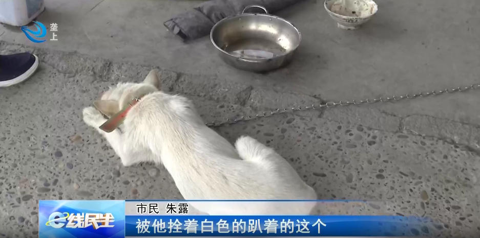 市民 朱露:就是那个白色的,被拴着白色的趴着的那只,追我追的可凶了,当时这个大叔说是野狗,说不是他们的,当时我摔的很严重。