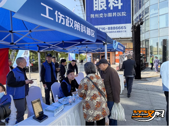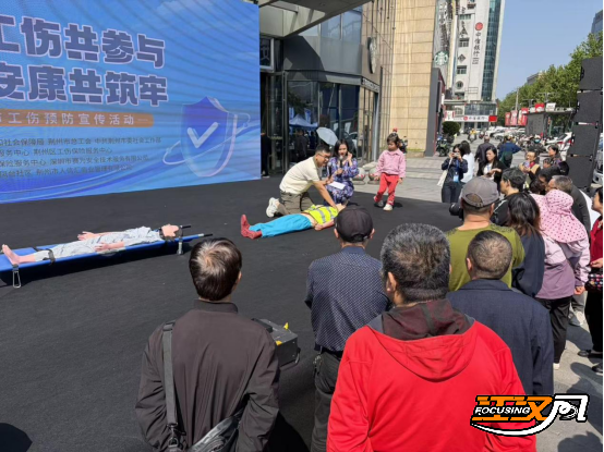 江汉风报道: 4月30日上午,由荆州市人社局、市总工会、市委社会工作部联合主办的“预防工伤共参与·荆楚安康共筑牢”工伤预防宣传进社区大型活动,在沙市区人信汇商场1号门广场举行。活动吸引了社区居民、外卖快递配送等新业态从业者、小微企业员工等近千名群众参与。