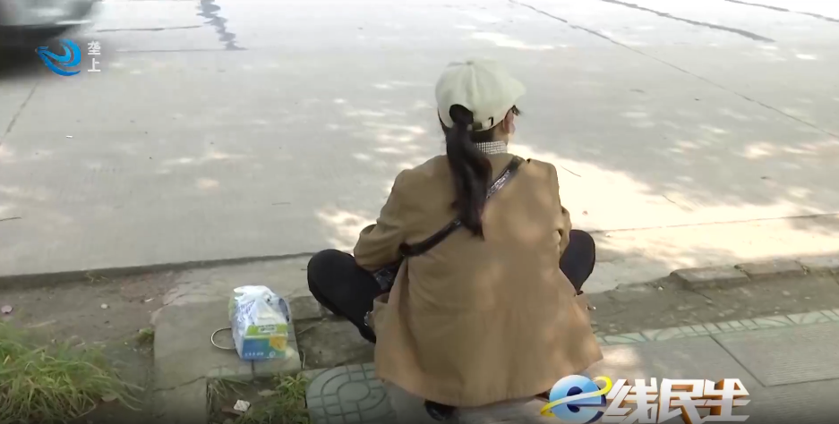 候车市民:我每个月都要来开药,每次来开完药在这里等公交车,因为身体原因,不能久站,都只能是坐在地上等车。
