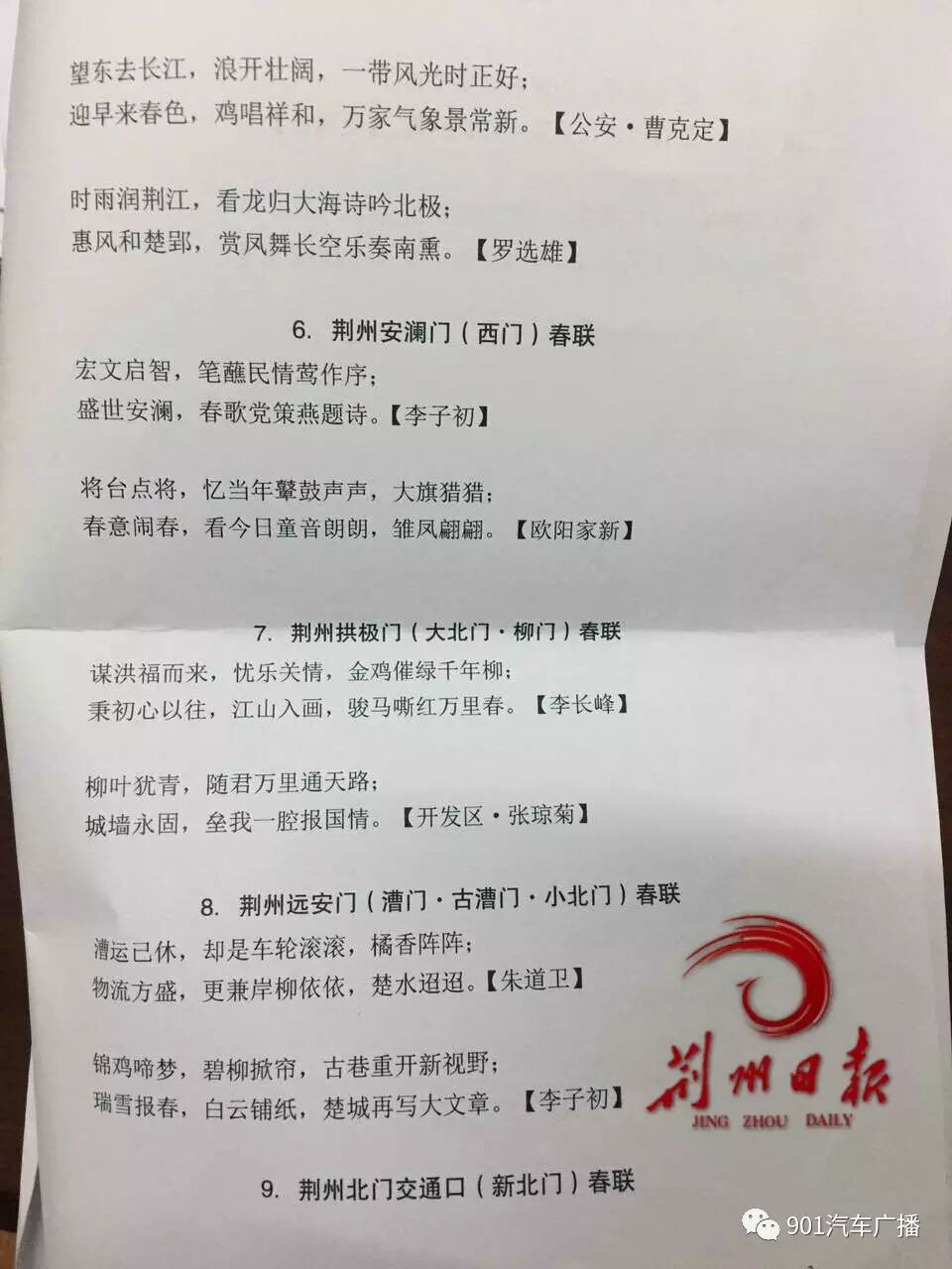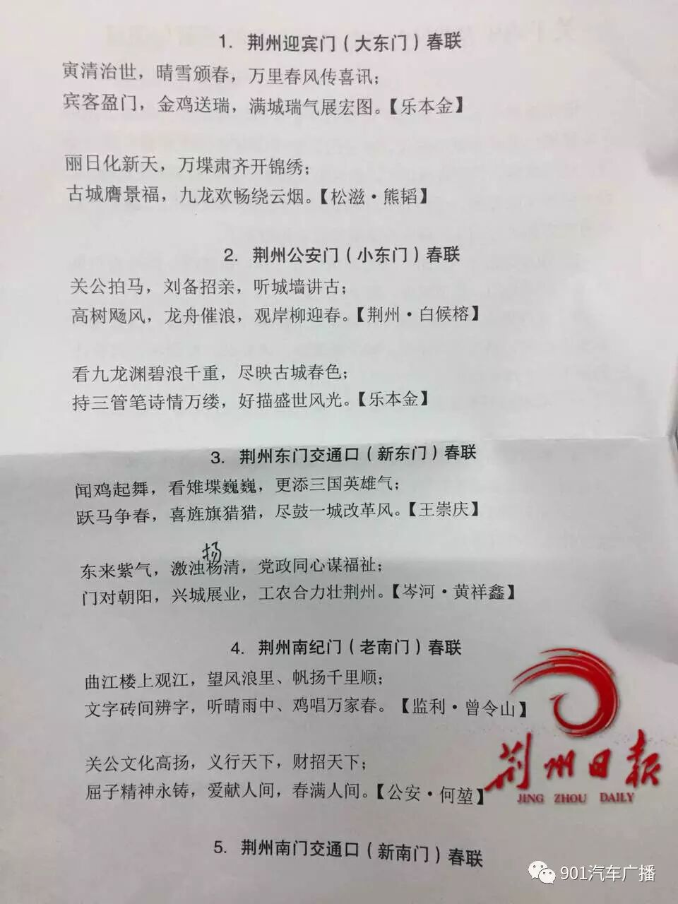 记者从荆旅集团了解到,此次城墙上共悬挂了18幅春联,每个城门内外各挂一幅。