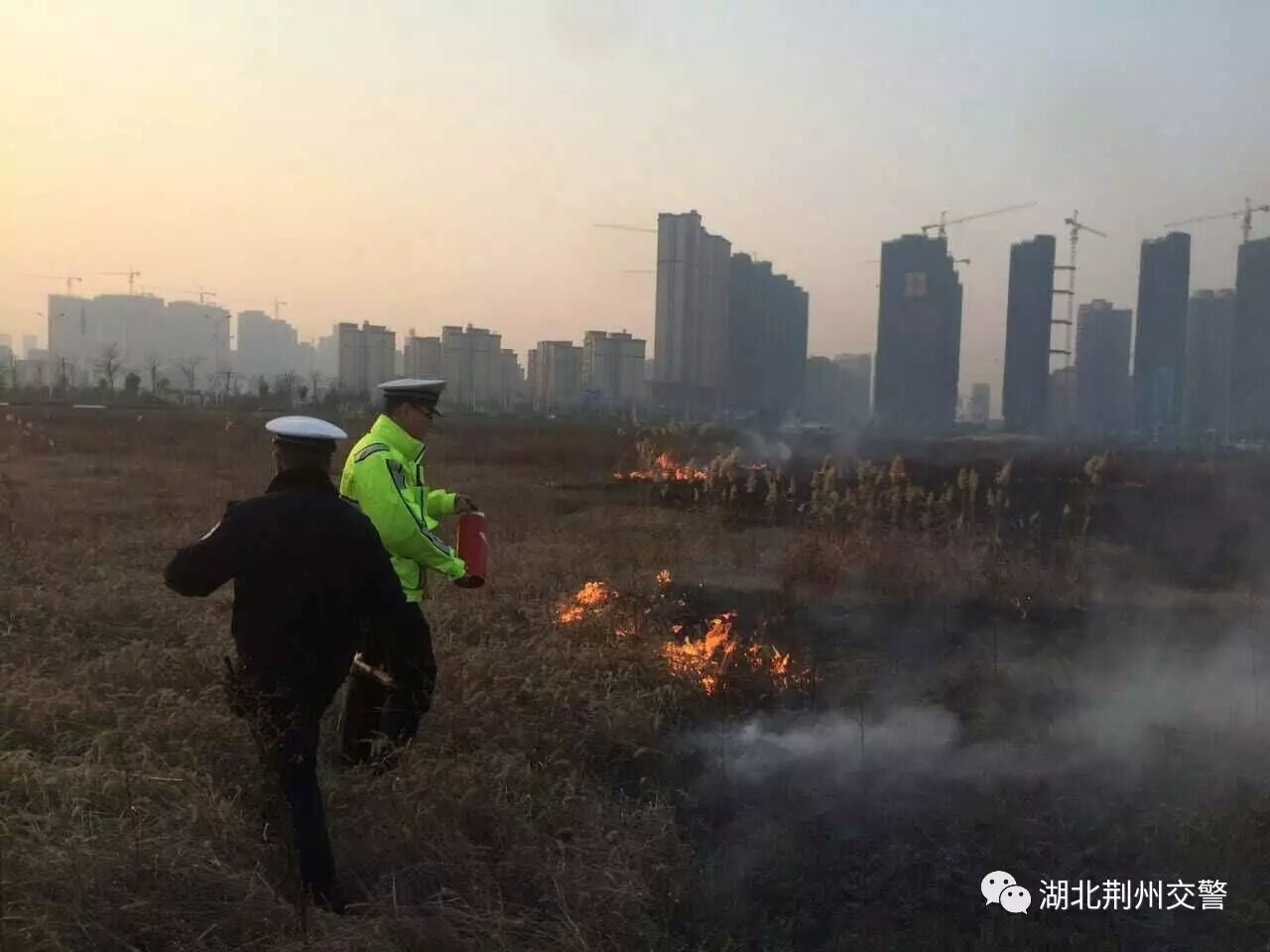 1月25日下午,二大队沙北警务站接报警称,新体育场附近草地起火。警情就是命令,路面巡逻民警接警后即刻赶往现场。