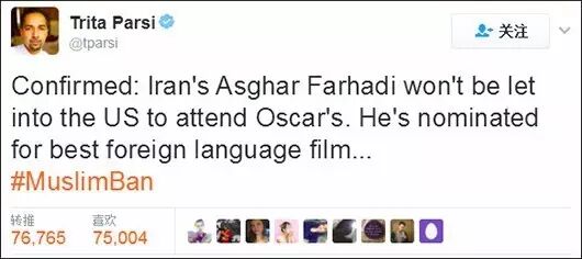 由于美国总统特朗普签署的“穆斯林禁令”,伊朗导演阿斯哈·法哈蒂确认将无法参加今年的奥斯卡。