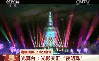 为了能让观众从各种不同的角度来欣赏春晚,不少高点机位和航拍被运用到春晚的转播中,春晚剧组在东方明珠周边架设了很多向高空投射的灯光。