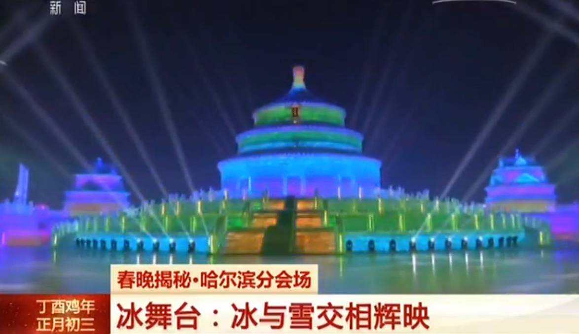 春晚哈尔滨分会场设立在哈尔滨冰雪大世界之内,除了舞台主背景,舞台本身也是全部用冰面制成的。在冰面上进行灯光和舞美的设计,这对于春晚主创团队来说还是第一次。