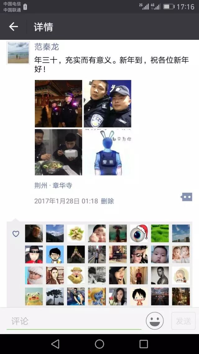 沙市区公安分局巡警大队民警范秦龙,在新年钟声敲响的“零点”发了一则“充实”的朋友圈······