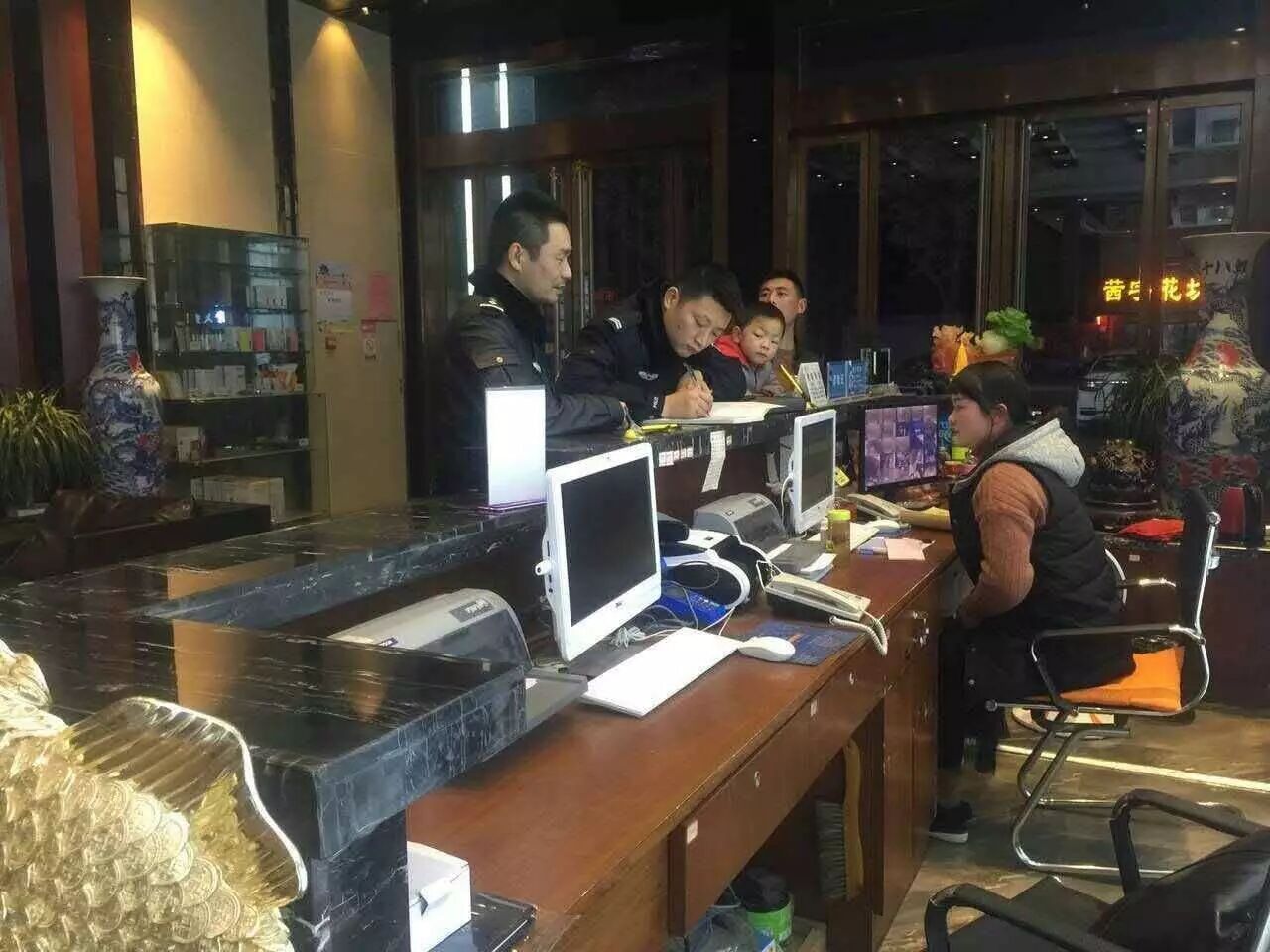 春节期间,开发区公安分局燎原派出所民警检查网吧、宾馆等人员聚集场所的治安消防安全。