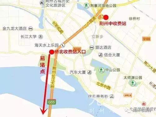 1、荆州本地前往江南的车辆可绕行至荆州中收费站上高速,避开站口较小易拥堵的桥北收费站;
